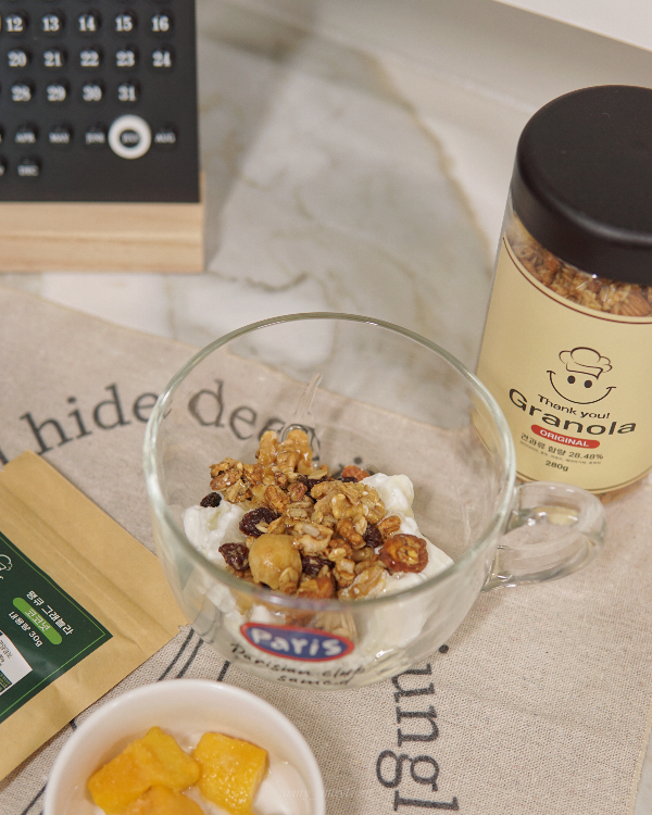 요번엔 시리얼 대신 그래놀라로 바꿔서 먹어봤다;)